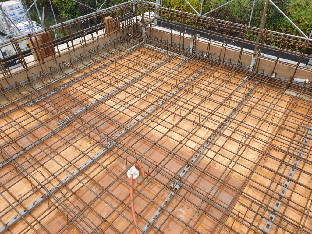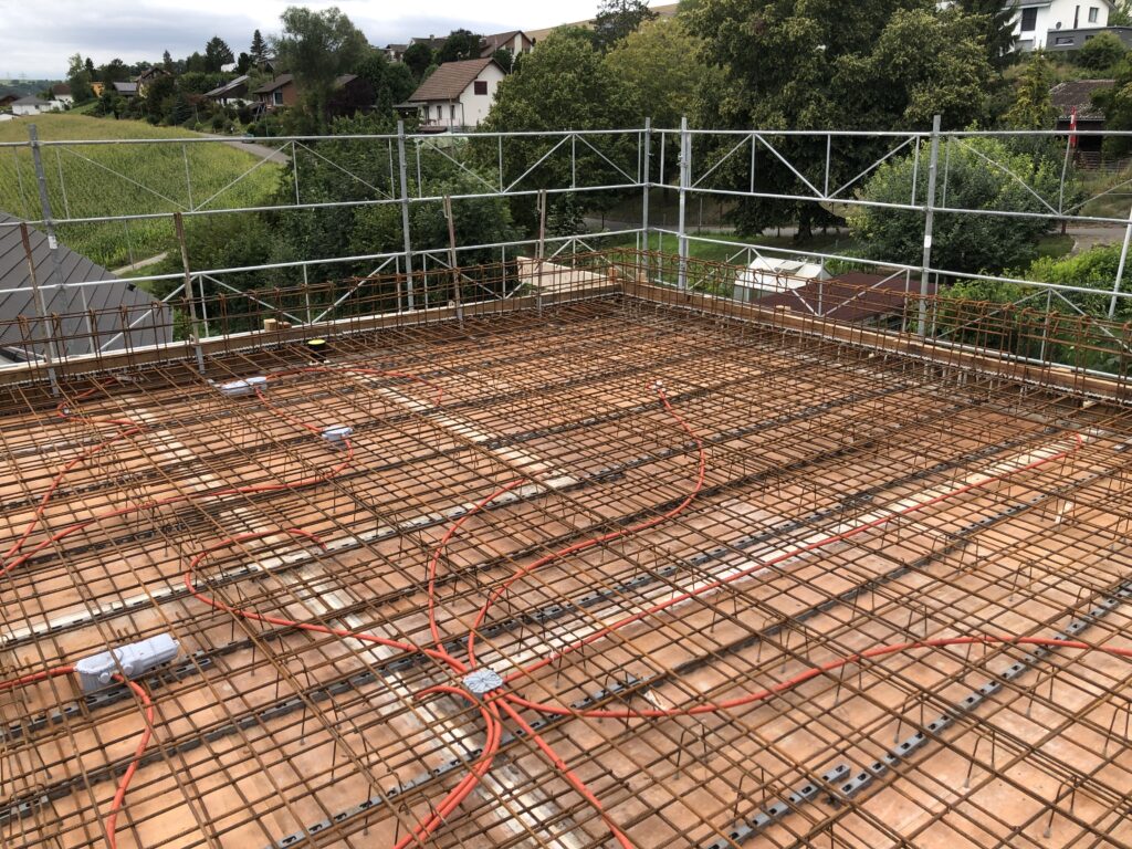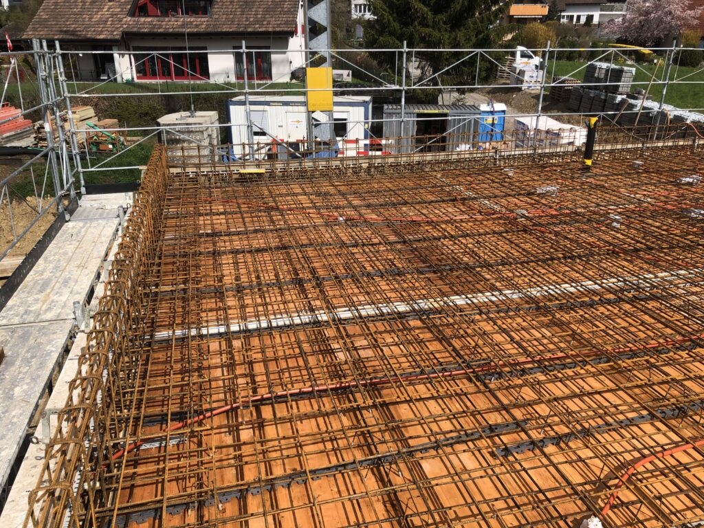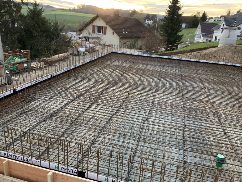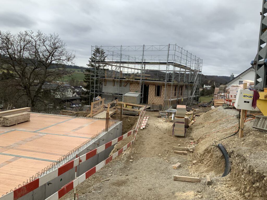 Klassischer Massivbau mit Beton-Bodenplatte, Beton- und Mauerwerkswänden und Geschossdecken aus Beton