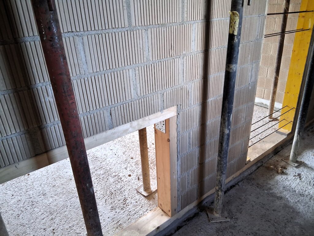 - Nicht tragende Innenwände wurden als vorgefertigte Elemente aus ungebranntem Ton hergestellt und just-in-time auf die Baustelle geliefert